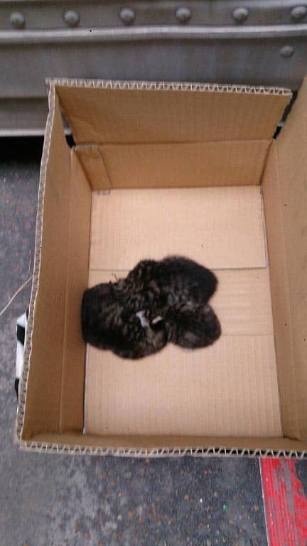 当店の廃タイヤ置き場に産まれたばかりの子猫がいます。