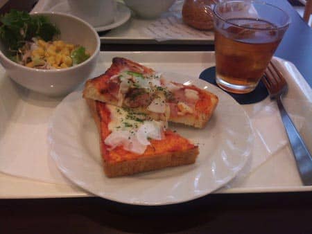 僕はピザトーストにサラダとスープセットを付けて食べました。