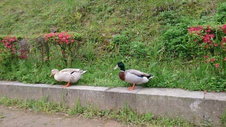 ひょうたん池公園を散歩していたら鴨の夫婦がいました。