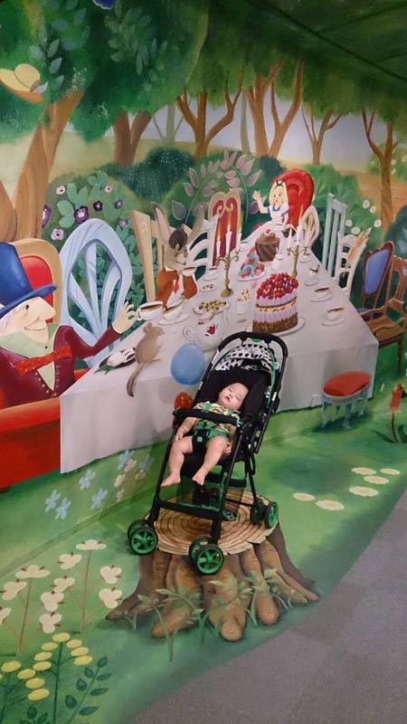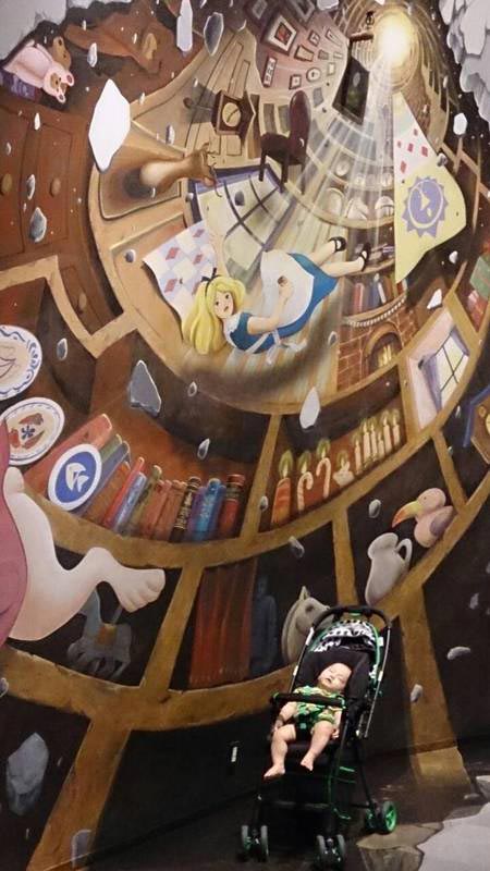 館内にあるトリックアートの前での写真です。