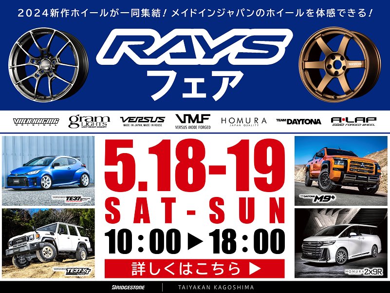 5月18日(土)19日(日)レイズイベント開催!! ポスト 2024年5月6日 レイズホームページ タイヤ館鹿児島=レイズNo.1ショップ認定店です。 ぜひこの機会にお立ち寄りくださいませ。 ご来店心よりお待ち申し上げます。 関連情報もあわせてご覧ください ★★★ビルシュタイン★★★ ★★★RAYS★★★ タイヤ館 鹿児島 住所:890-0072鹿児島県鹿児島市新栄町4-23 電話番号: 099-808-0035 相談予約 担当:かわばた