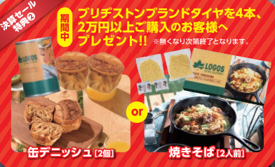 特典②期間中、ブリヂストンタイヤ4本又は2万円以上ご購入いただいた方に、