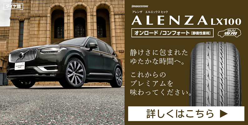 そこで注目してほしいのが、SUV専用に設計されたタイヤALENZAシリーズです。静粛性を追求したALENZA LX100と、運動性にこだわったALENZA 001がラインアップされています。
