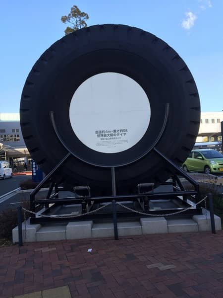 さすがブリヂストン発祥の地!駅にでっかいタイヤのモニュメントが置いてありました(^○^)
