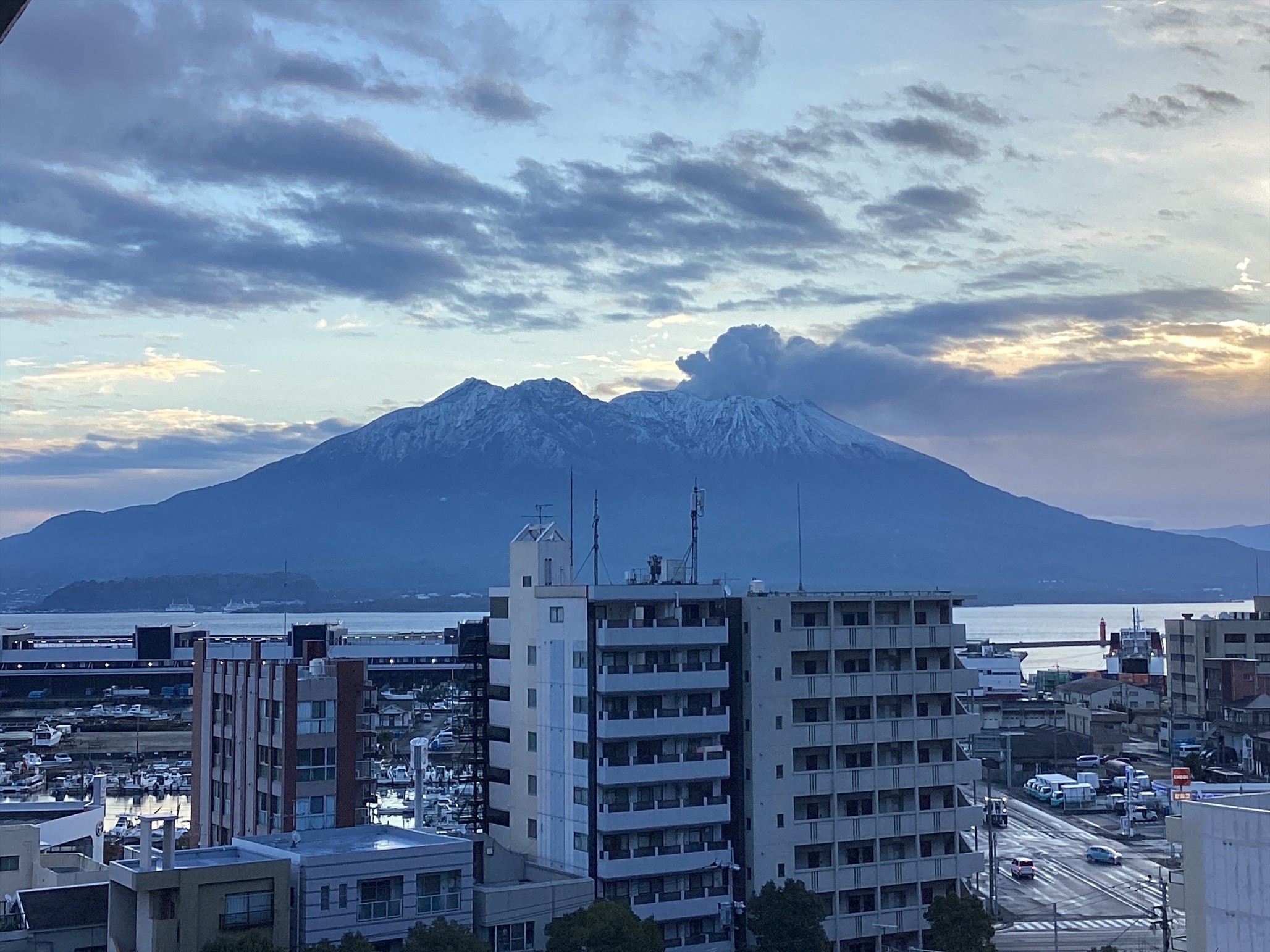 桜島雪化粧 鹿児島市内路面が滑りやすくなっておりますのでお気をつけて!