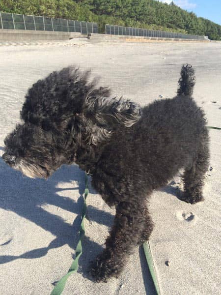 先日のお休みに 我が家の愛犬ゴンちゃんを近所の海に連れて行きました。