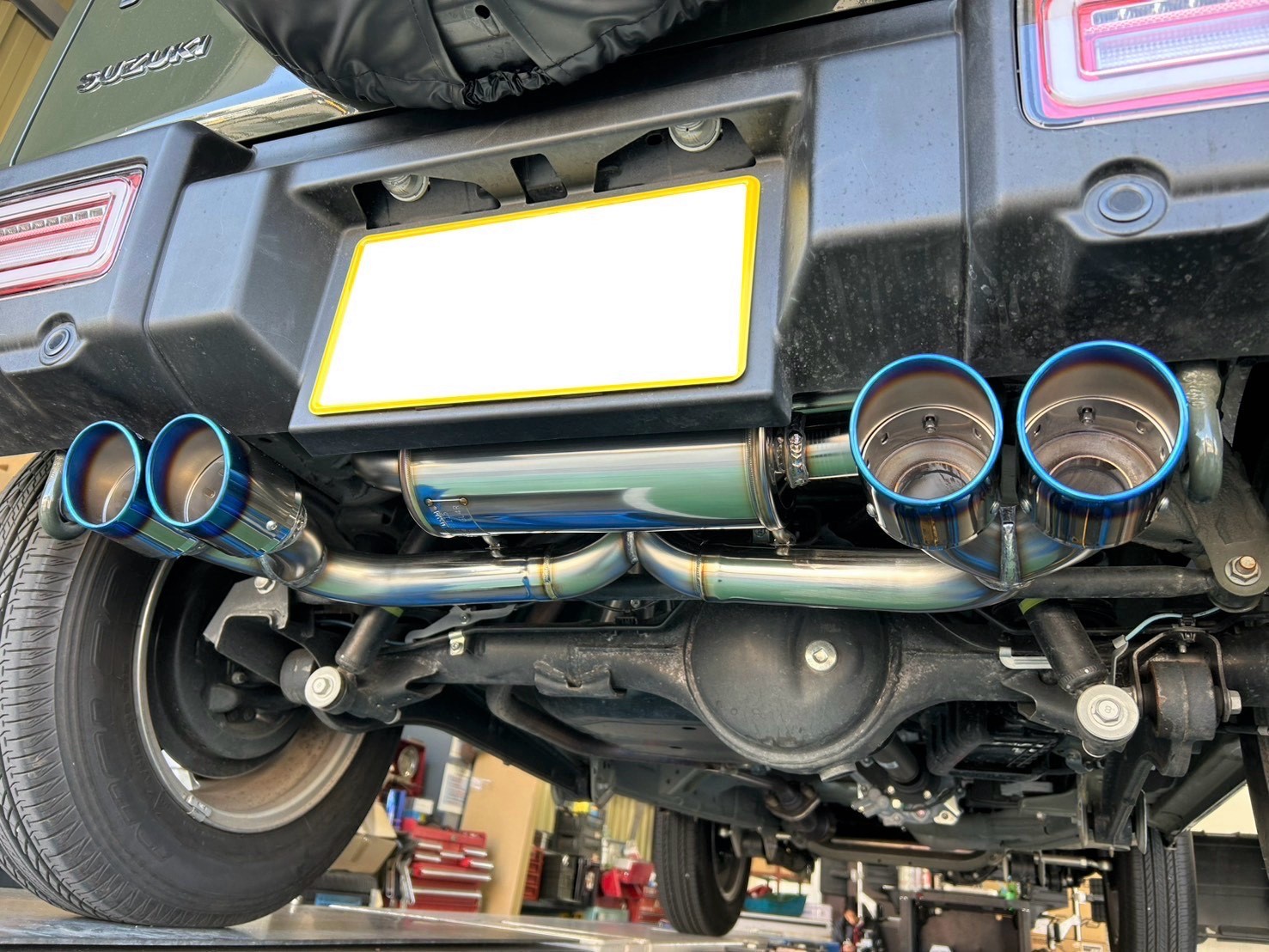 スズキ ジムニー マフラー交換 ご来店ありがとうございました ポスト 2026年2月20日 CAR:スズキ / ジムニー MUFFLER:ロッソモデロ / DUSSEL GT-Four(4本出しチタンテールマフラー) タイヤ館 鹿児島 住所:890-0072鹿児島県鹿児島市新栄町4-23 電話番号: 099-808-0035 相談予約