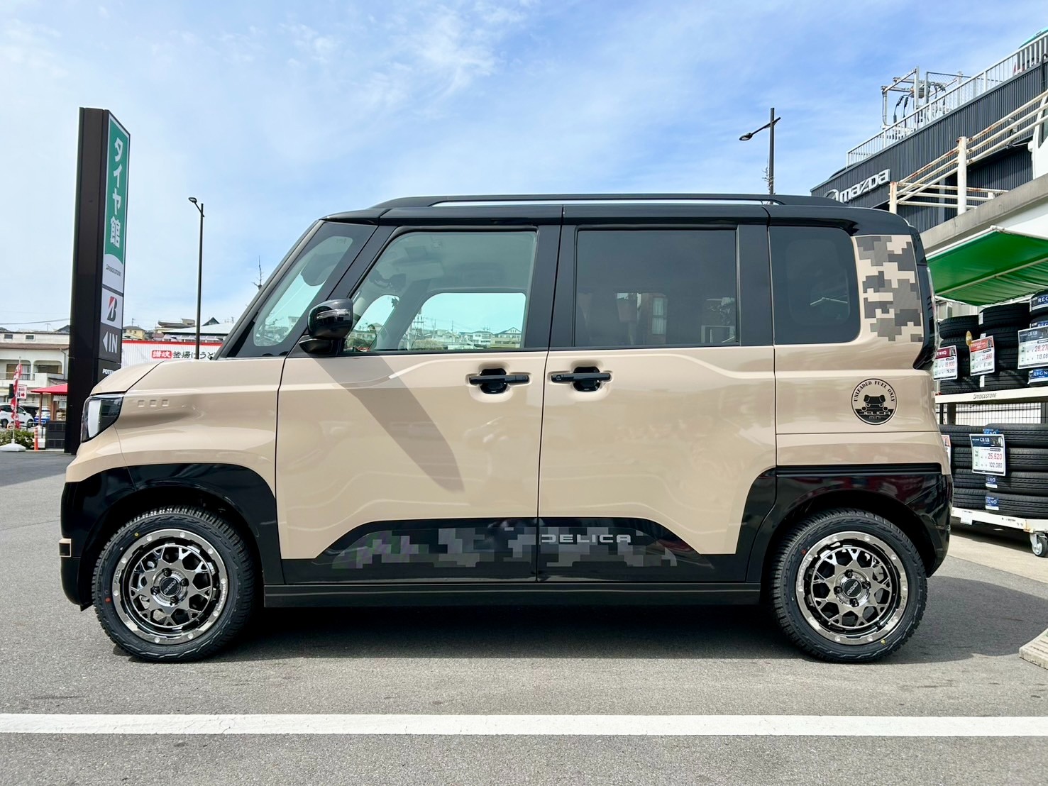 三菱 デリカミニ ホイール インストール ご来店ありがとうございました ポスト 2026年3月21日 CAR:三菱 / デリカミニ WHEEL:RAYS(レイズ)/ TEAM DAYTONA M9+ COLLECTION (レイズブラックメタルコート) タイヤ館 鹿児島 住所:890-0072鹿児島県鹿児島市新栄町4-23 電話番号: 099-808-0035 相談予約 タイヤ点検・安全点検/タイヤ履き替え/オイル交換/その他ピット作業の予約