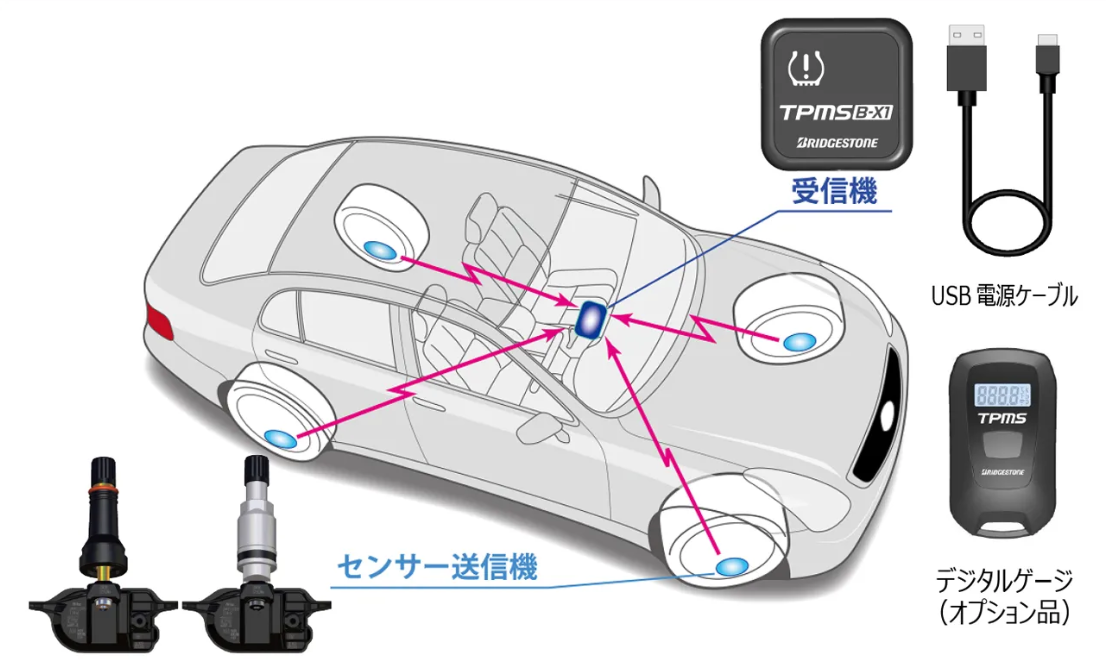 ホイールに取り付ける送信機と車内に設置する受信機を経て、