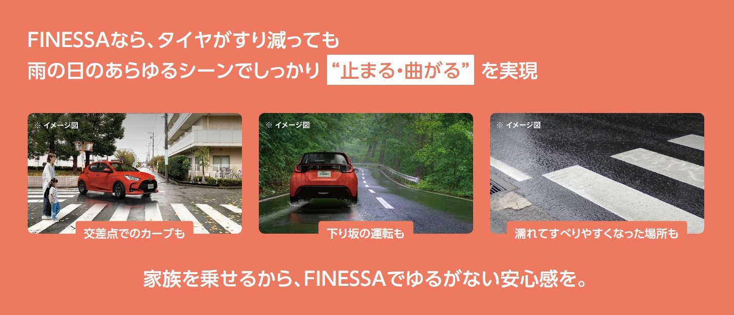 新品時から摩耗時まで雨の日でもしっかり止まる・曲がる、ゆるがない安心感:フィネッサ(FINESSA) - 株式会社ブリヂストン