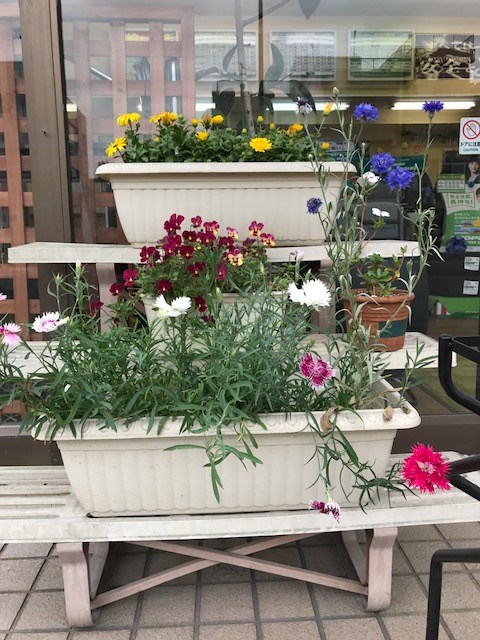 以前 レディースウィークのイベントで女性のお客様にお配りしたお花のタネを蒔いていましたが、沢山お花が咲きました。
