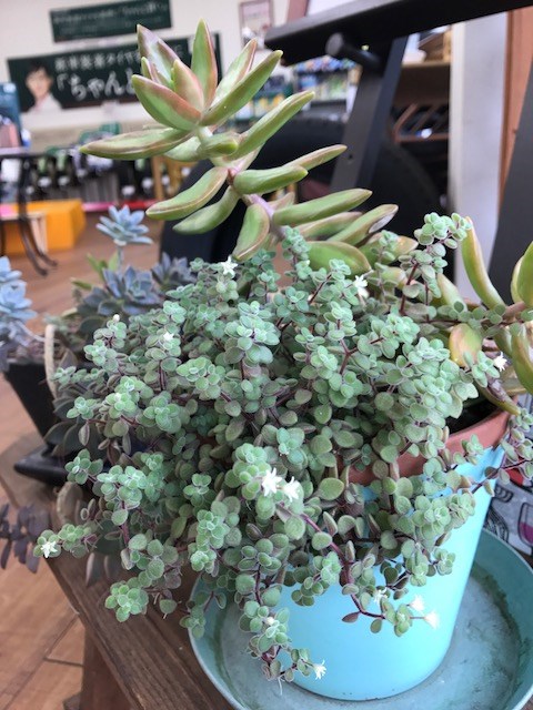 店内の多肉植物のセダムにも小さな白いお花がつきました♪