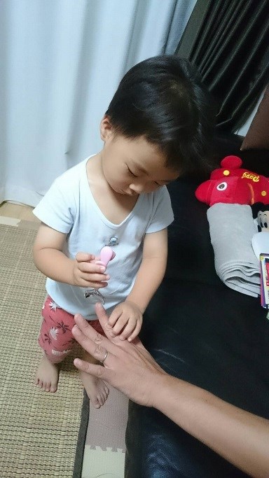 息子がなにやら化粧箱から持ってきて『父ちゃん、ちょっと手出して』と