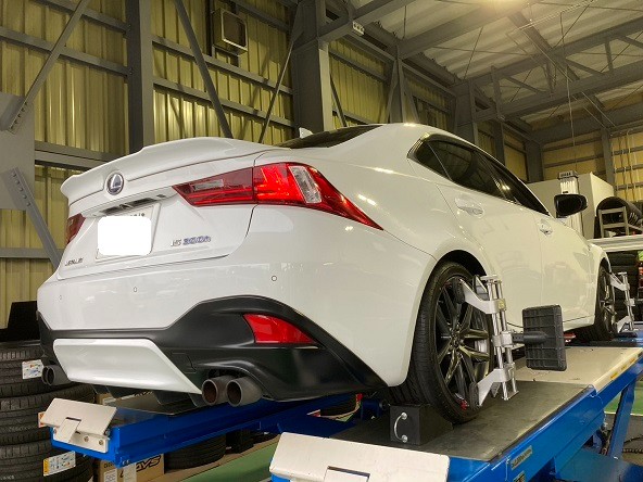 レクサスIS【アライメント調整】タイヤの内側が早く減る傾向を抑制し、タイヤ本来の性能を発揮します。