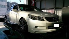 お車を大事に永く乗りたいとおっしゃるお客様です。 無限のエアロと19インチアルミ、タイヤはレグノGR-XTが 大人っぽく渋くまとまりあるスタイルです。 測定をしたところ基準値内でしたが、より数値の左右差をなくし より高速直進安定性、走りのスムーズさを増すために調整を施しました。 オ...