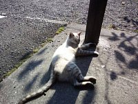 散歩中気持ちよさそうに寝ているネコちゃん発見!! 人が近くに来てもまったく起きなかったので写真をとりました。 おーい!!ネコちゃん起きて~って呼んでもびくともせず、飴食べようとしたら飛び上がる ように起き上がりました(笑) その後起きながら寝てました!!