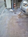 朝起きて外に出たら気持ちよさそうに寝てるーと思って写真を撮ろうと近くによって携帯を むけたら、一匹が起き上がり追っかけられました(笑)朝から久しぶりに走りました!!