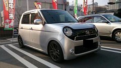 ホンダN-ONE!!新車ご購入すぐに、タイヤアルミ、足回り、パナソニックナビ お買い上げありがとうございます。シルバーのカラーとアルミのブロンズが 渋いですね。