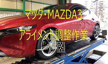 【マツダ MAZDA3】アライメント調整作業をさせていただきました。