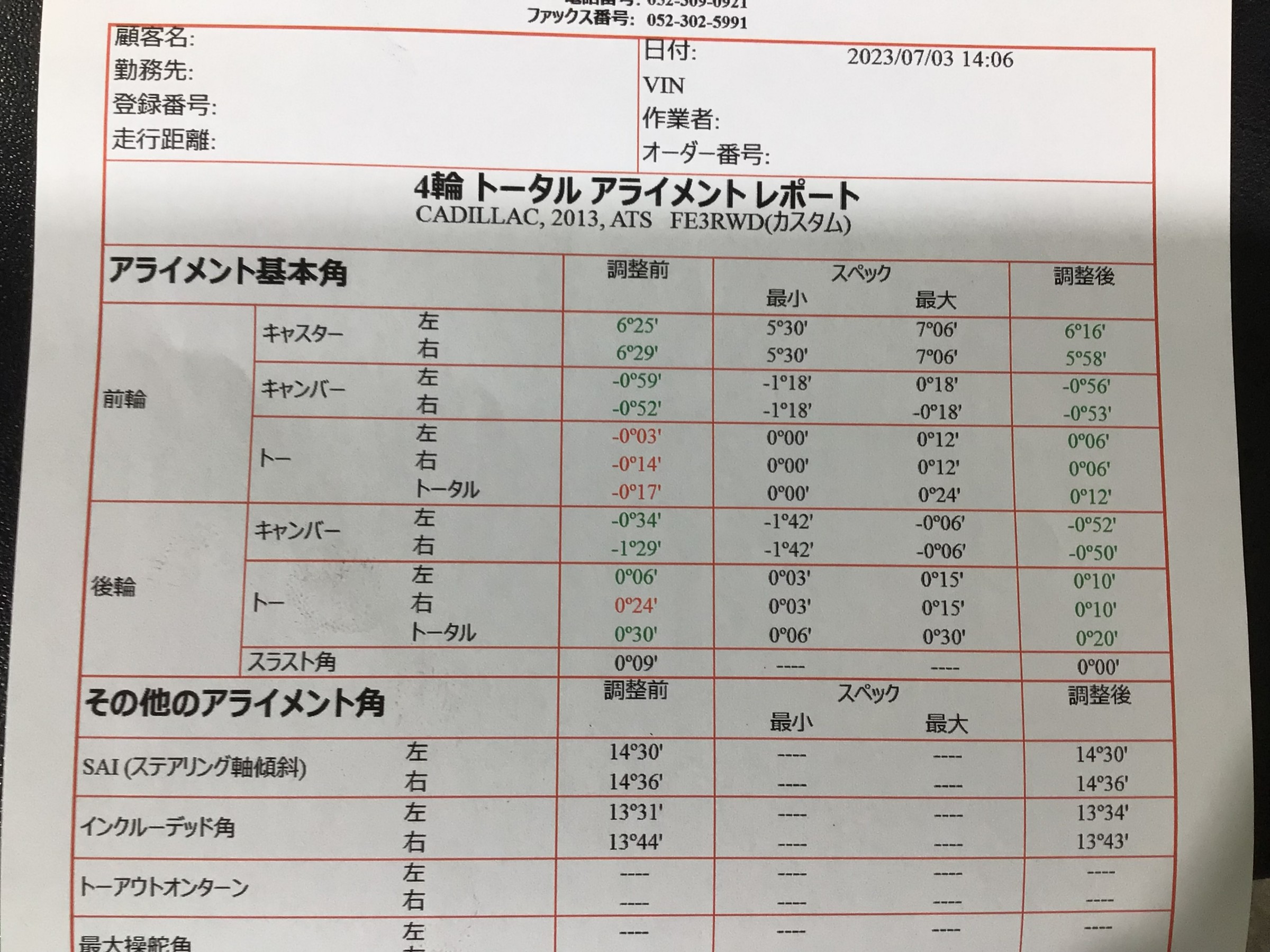 キャデラック ATSのアライメント調整作業のご紹介です!