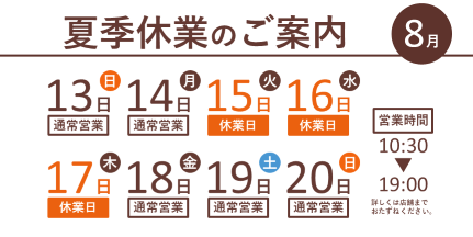 2023年8月15日(火) 休業