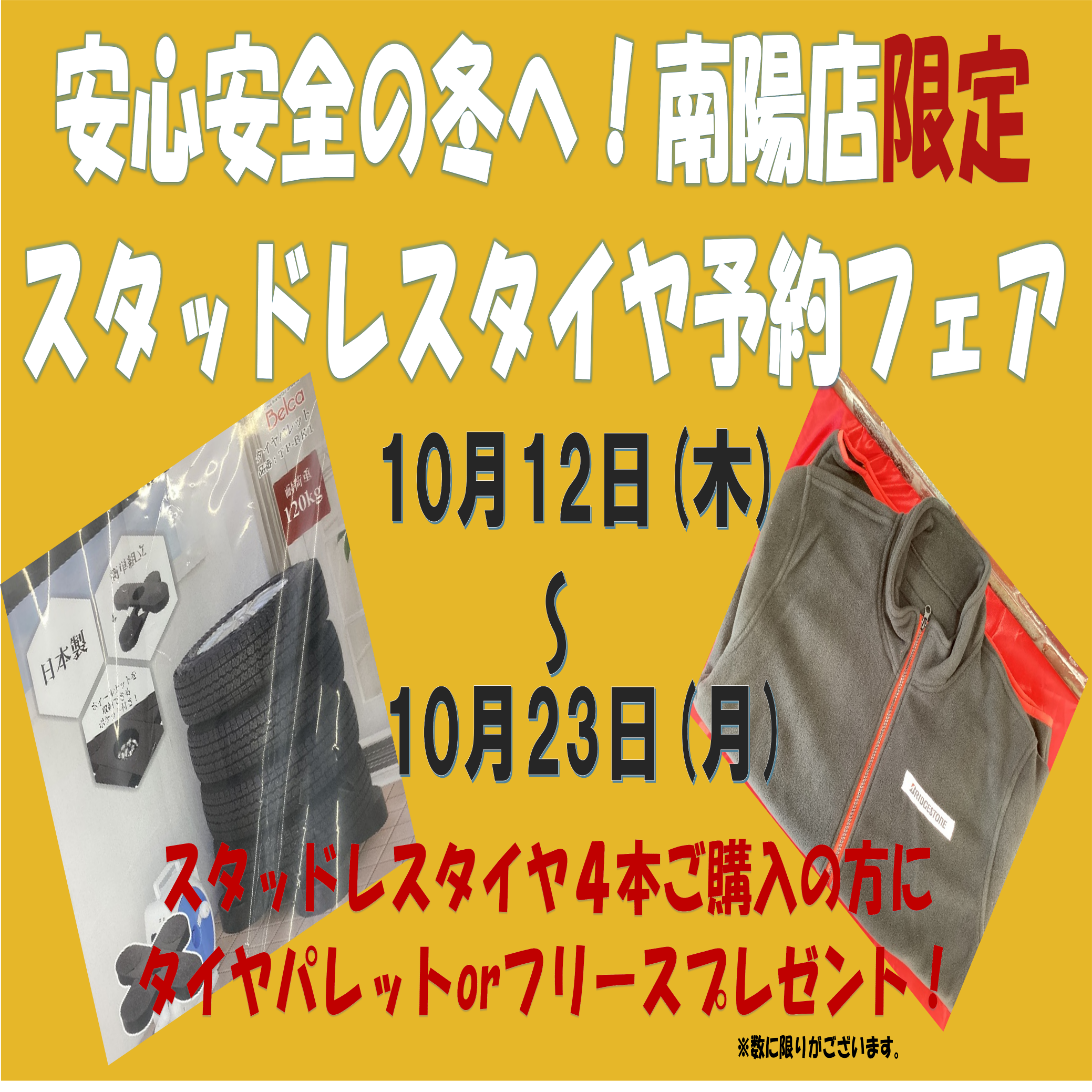 タイヤ館南陽です。