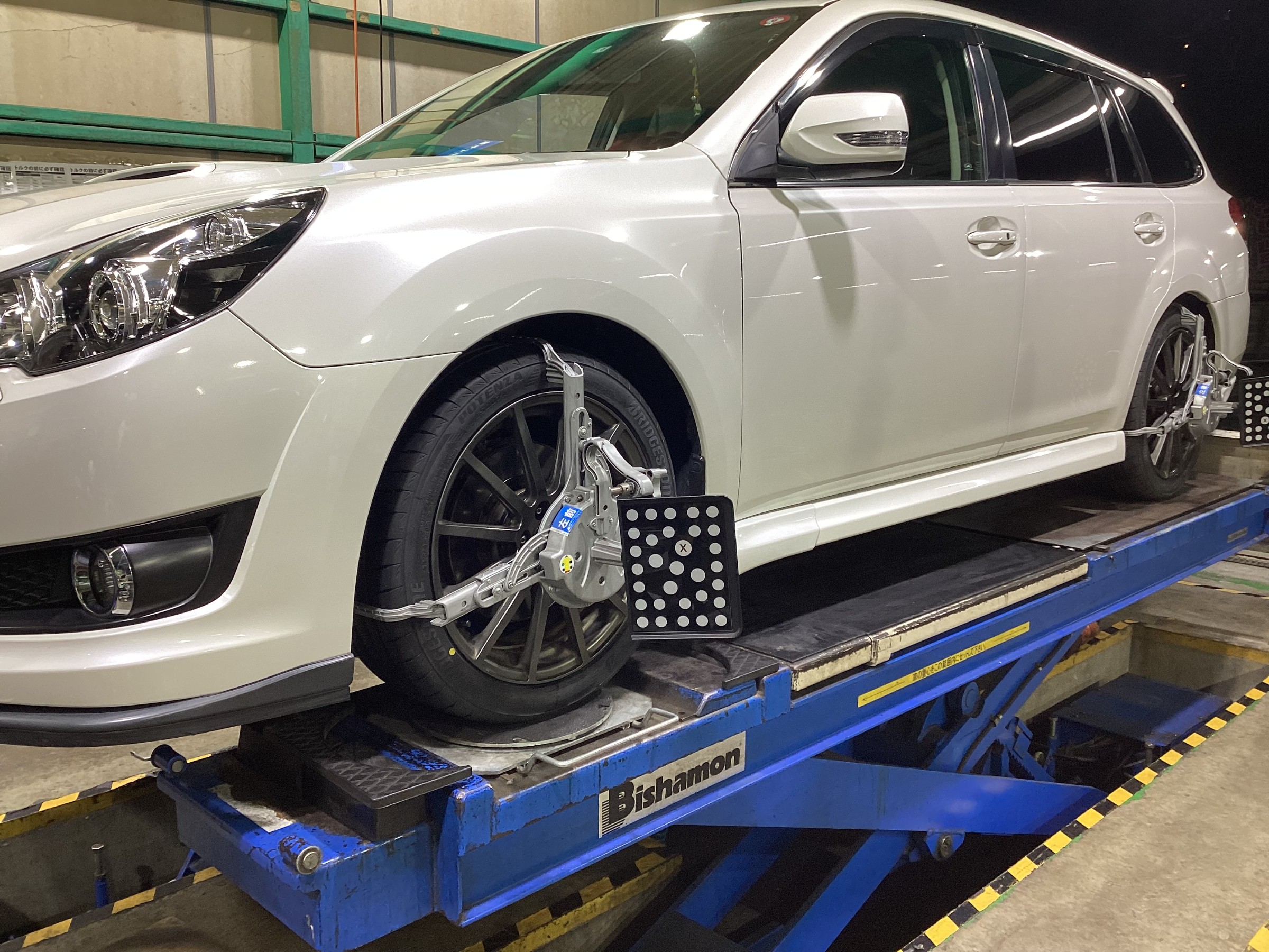 【スバル レガシィ】タイヤ交換&アライメント調整作業をさせていただきました。