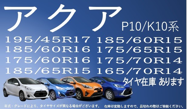 タイヤ館南陽の【在庫情報】車種別 トヨタ コンパクトカー 編 ≪愛知県名古屋市港区のタイヤ専門店≫