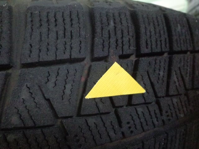 黄色の矢印のところ(プラットホーム)が露出するとスタッドレスタイヤとして