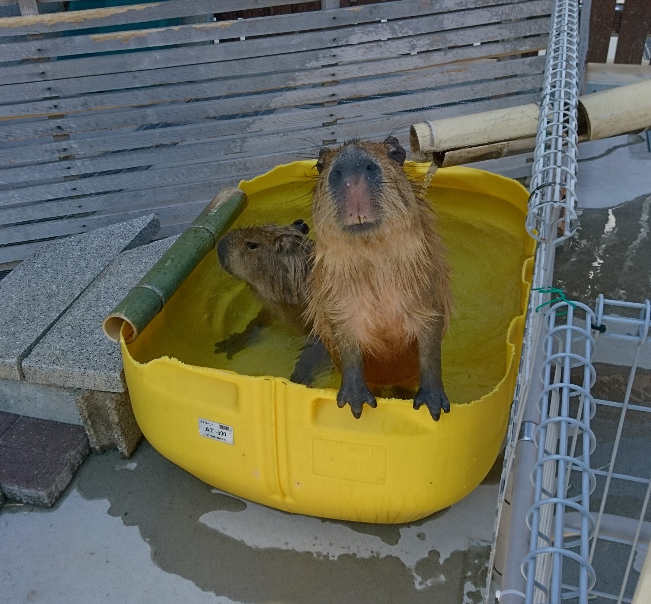 カピバラ君はお風呂から出ずにエサをねだるという、わがままっぷりでした(笑)