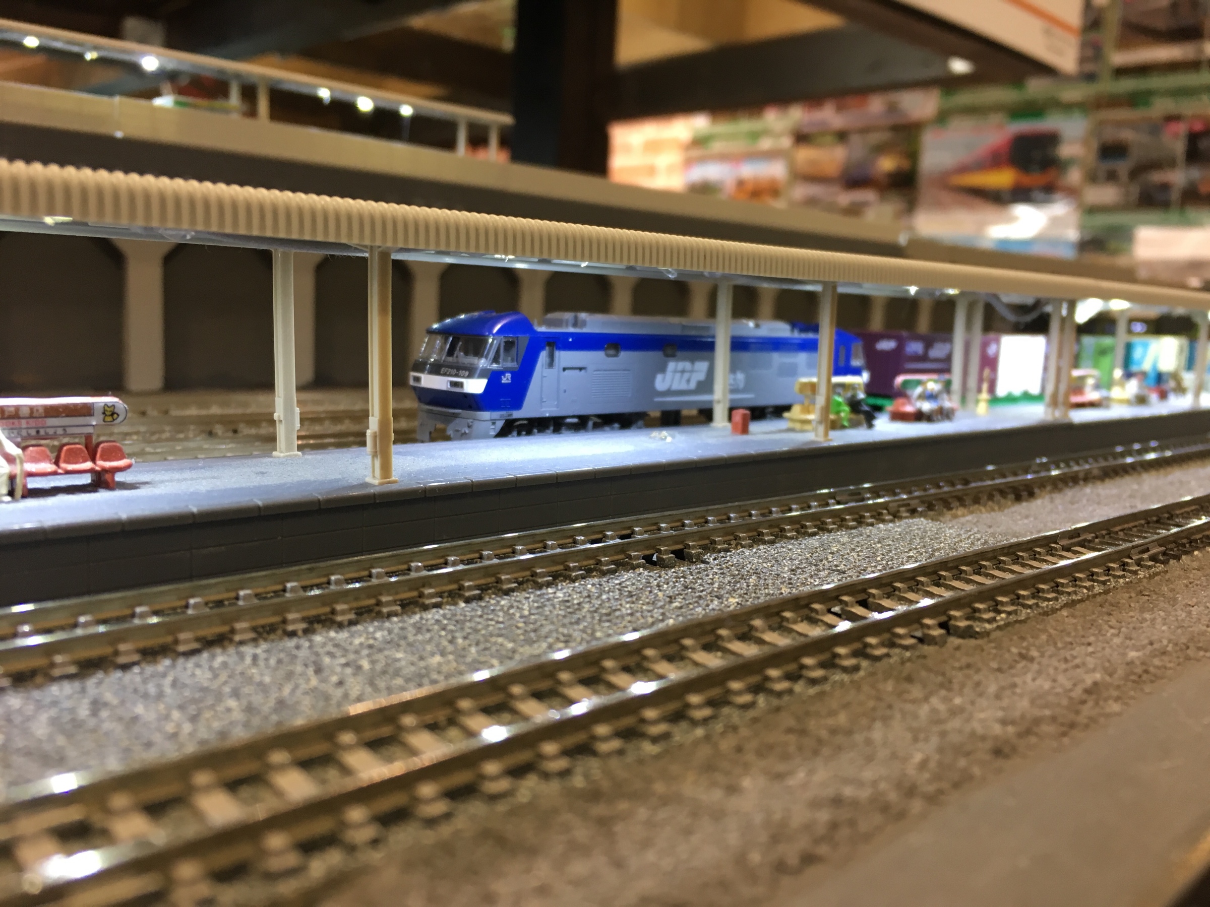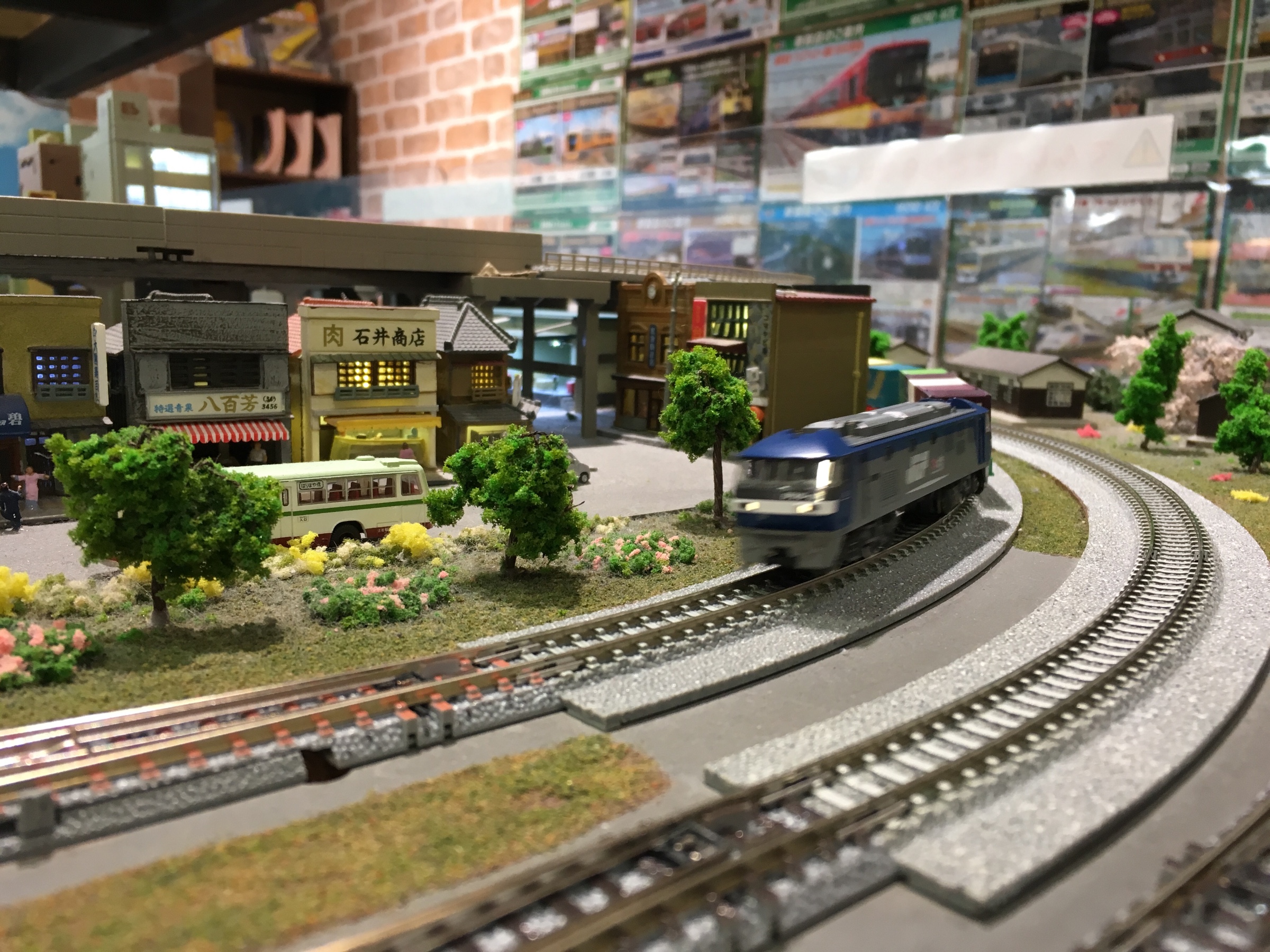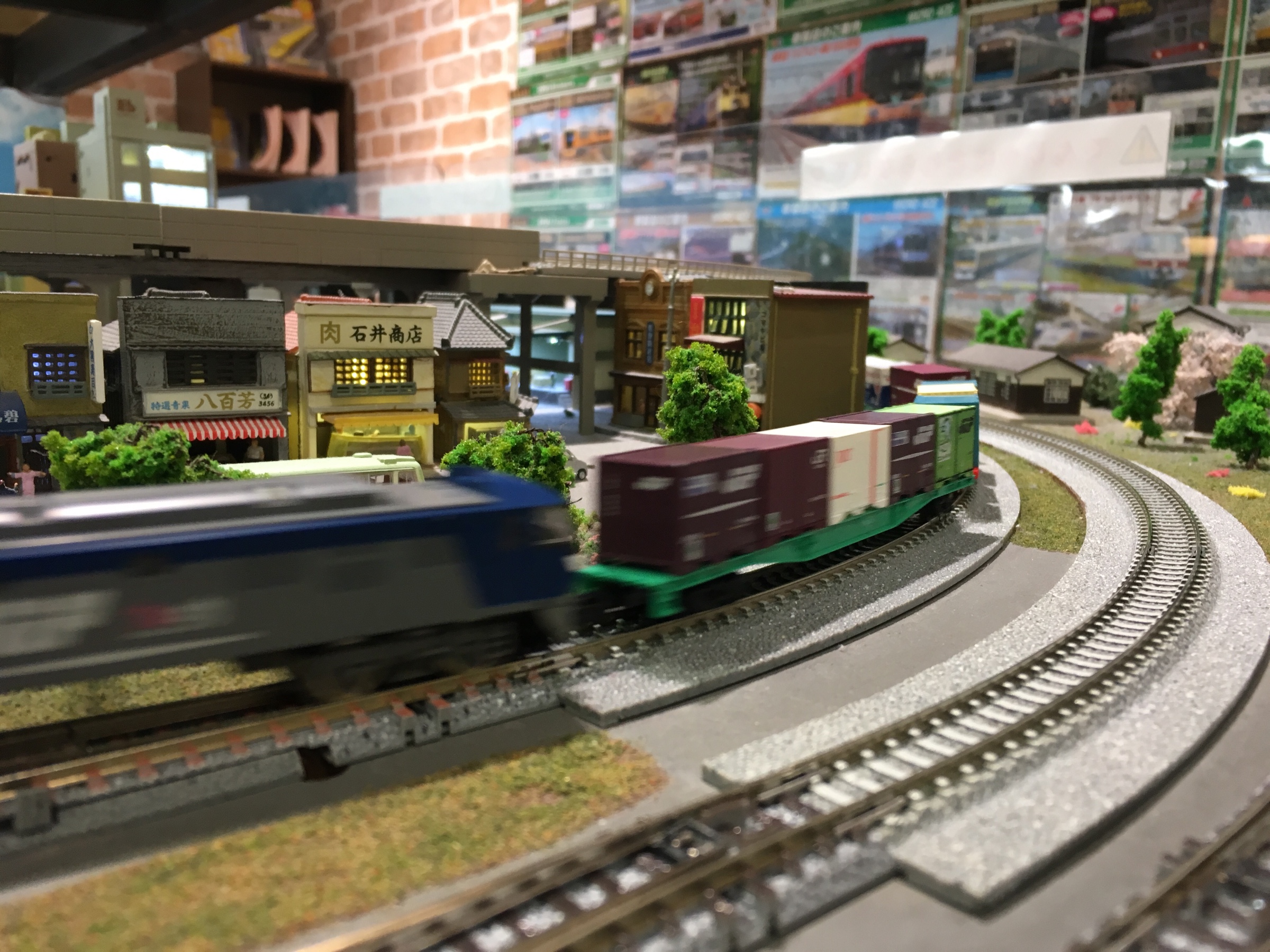 で、このポポンデッタさんで何をしたかと言うと、ここには模型のNゲージやプラレール、グッズなどを販売していますが、ジオラマが設置してあり、持っているNゲージや車両をレンタルして走らせることが出来ます。