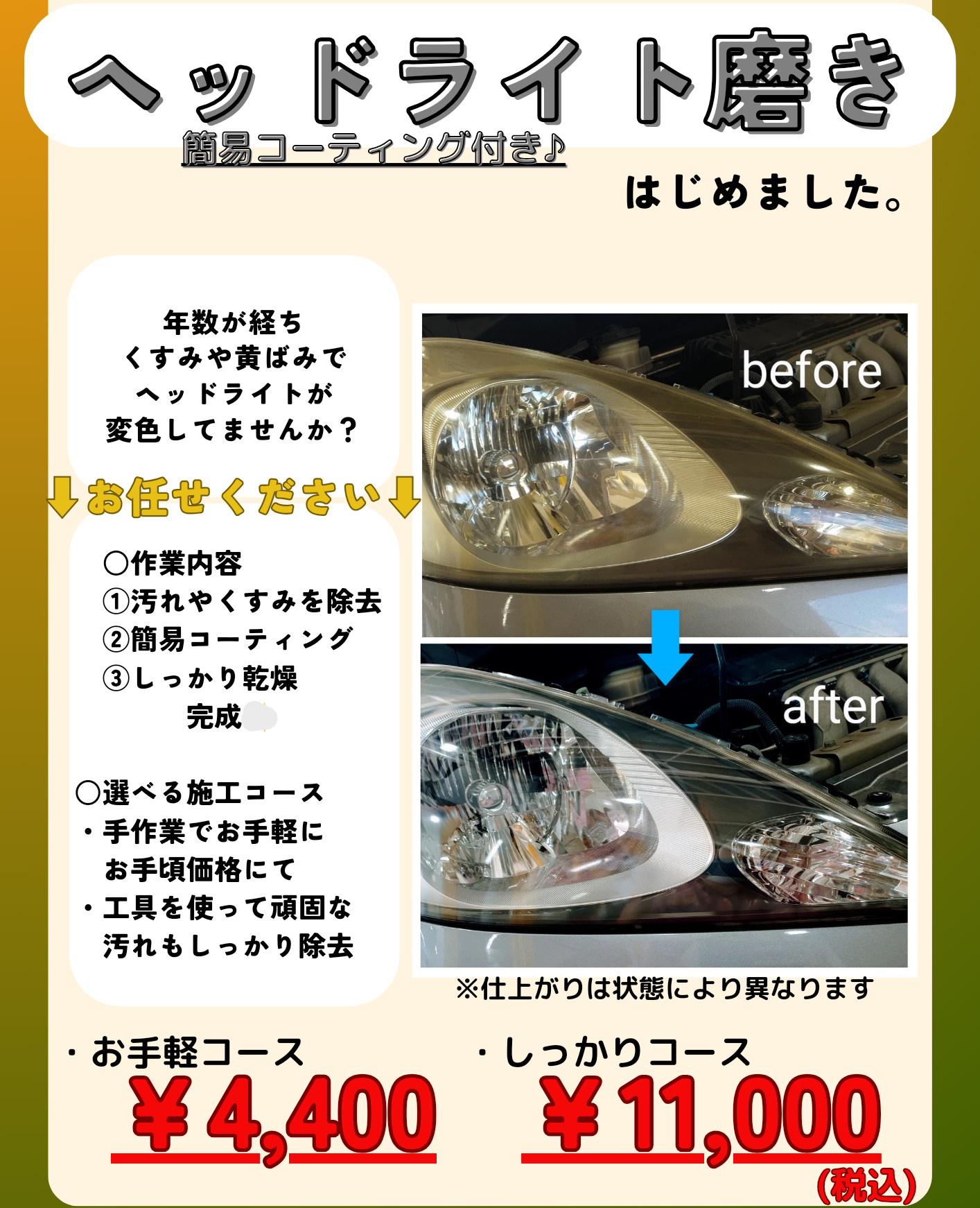ぜひ、愛車のライトを確認してみてください!!