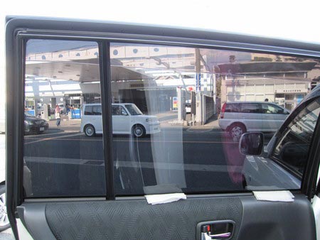 後ろの窓にカーフィルムを張ることにより