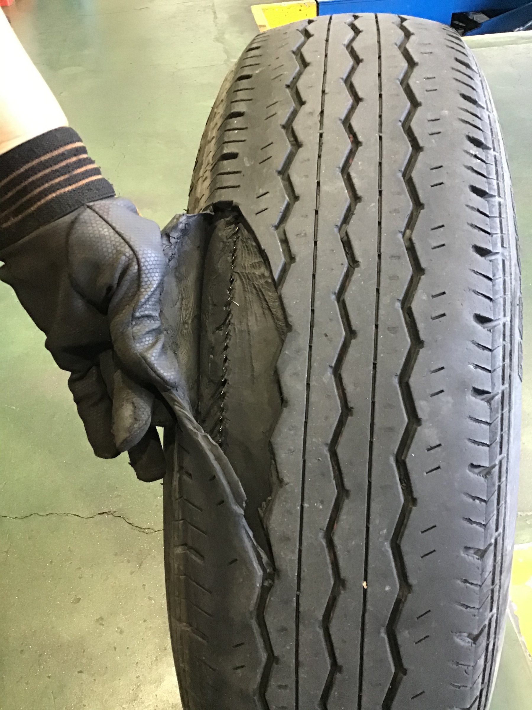 このままでは「バースト」といってタイヤが破裂することになってしまいますので交換させていただきました。