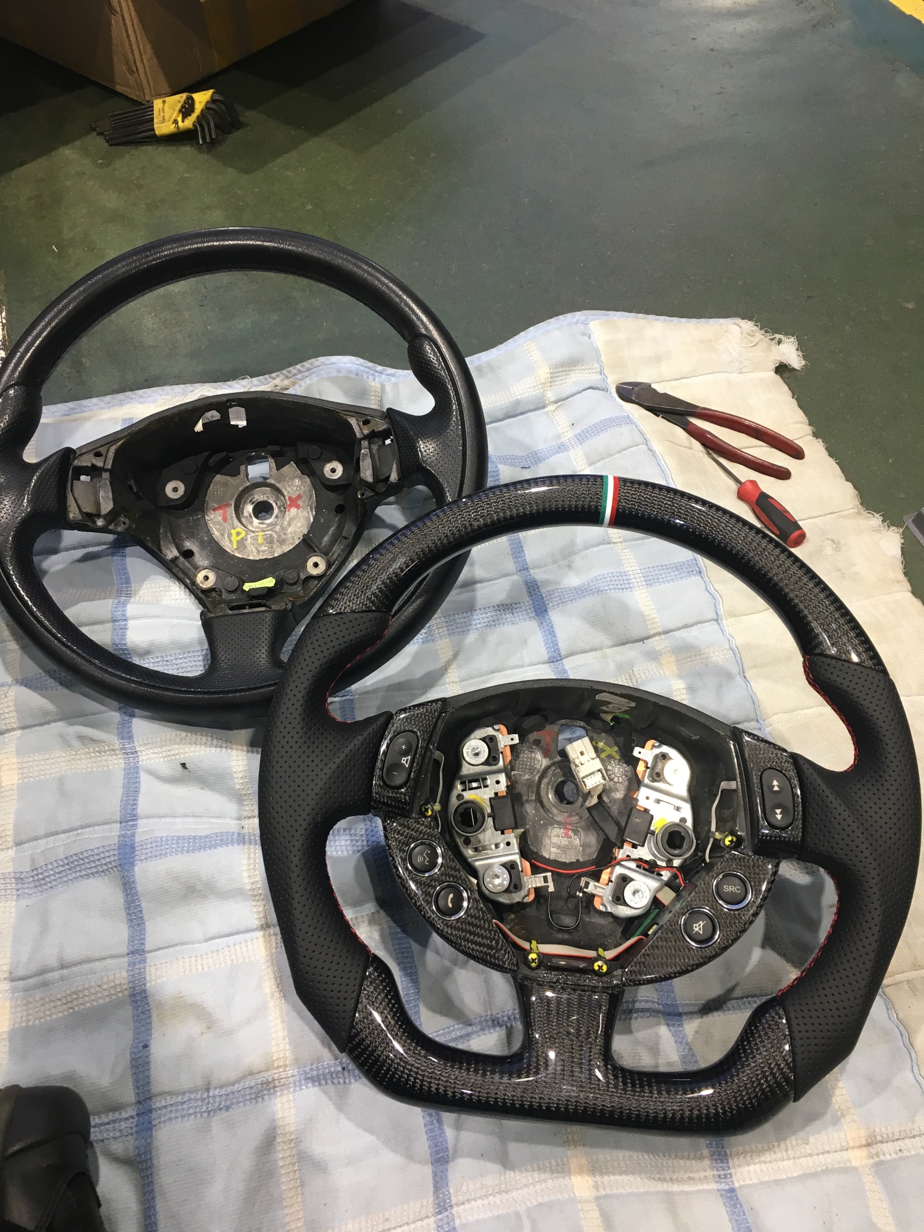 マセラティグランツーリズモ ステアリング交換 ポスト 2020年10月16日 高級車の作業は緊張しますね〜 エアバッグの外し方が分からなくてヒーヒー言ってました。 移植する物もいっぱいあって面倒臭い( ̄(工) ̄) やっと完成( ^ω^ ) 外し方わからない人は教えてあげますよ〜 すぐ忘れちゃいますからね。 担当:原