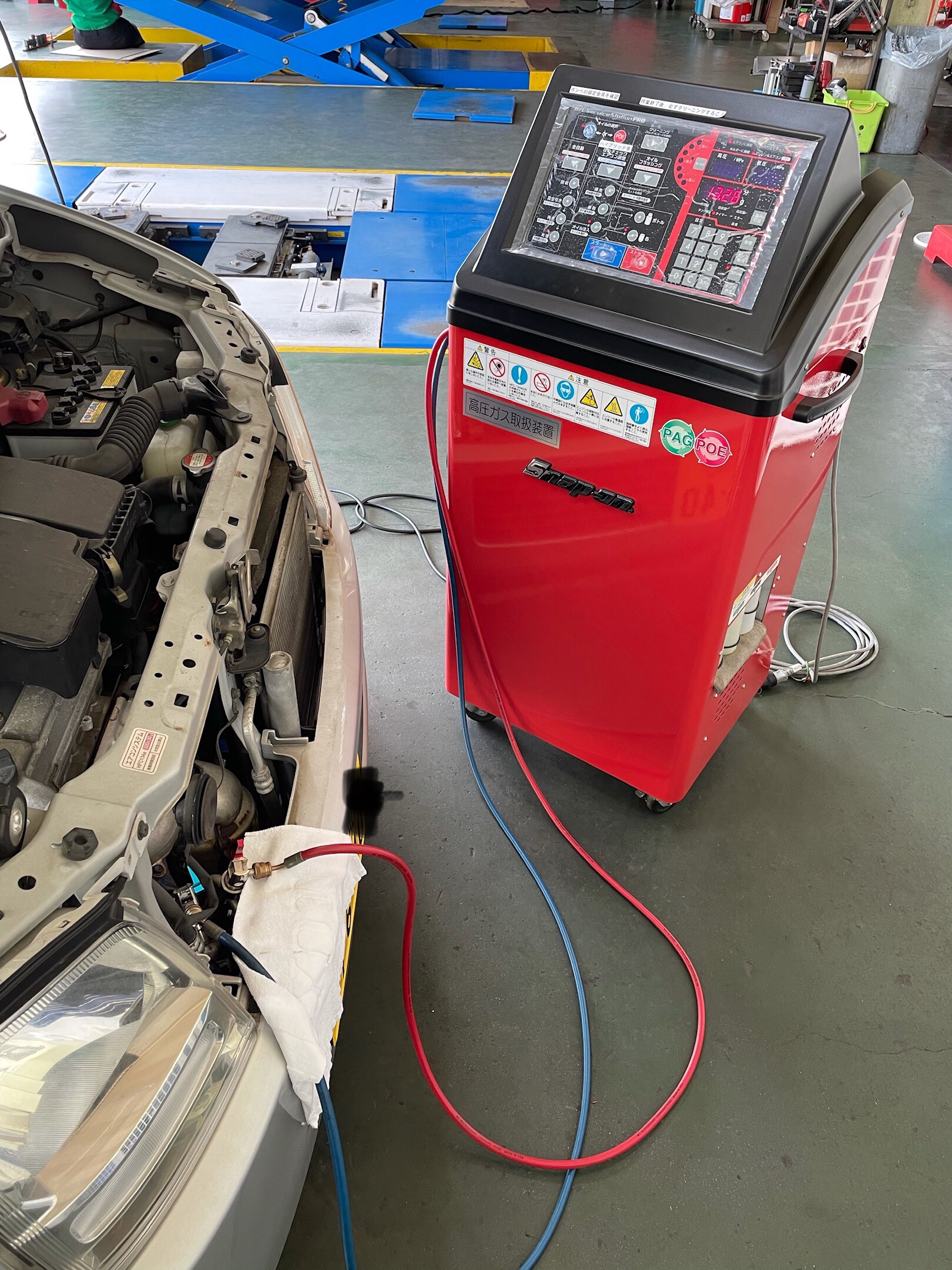 始まりました、エアコンガスクリーニング! ポスト 2021年5月2日 先月末から、暑い日が続いたこともあってエアコンの効きに不満が出てきた方も 多いのではないでしょうか! この車両はバルブコアからすこ〜しずつ漏れてましたので、1度ガスを回収し (80gしか入ってませんでした) コアを交換してから、基準量をオイルと共に充填致しました。 夏を涼しくお過ごし下さいw ご利用ありがとうございました! 担当:原