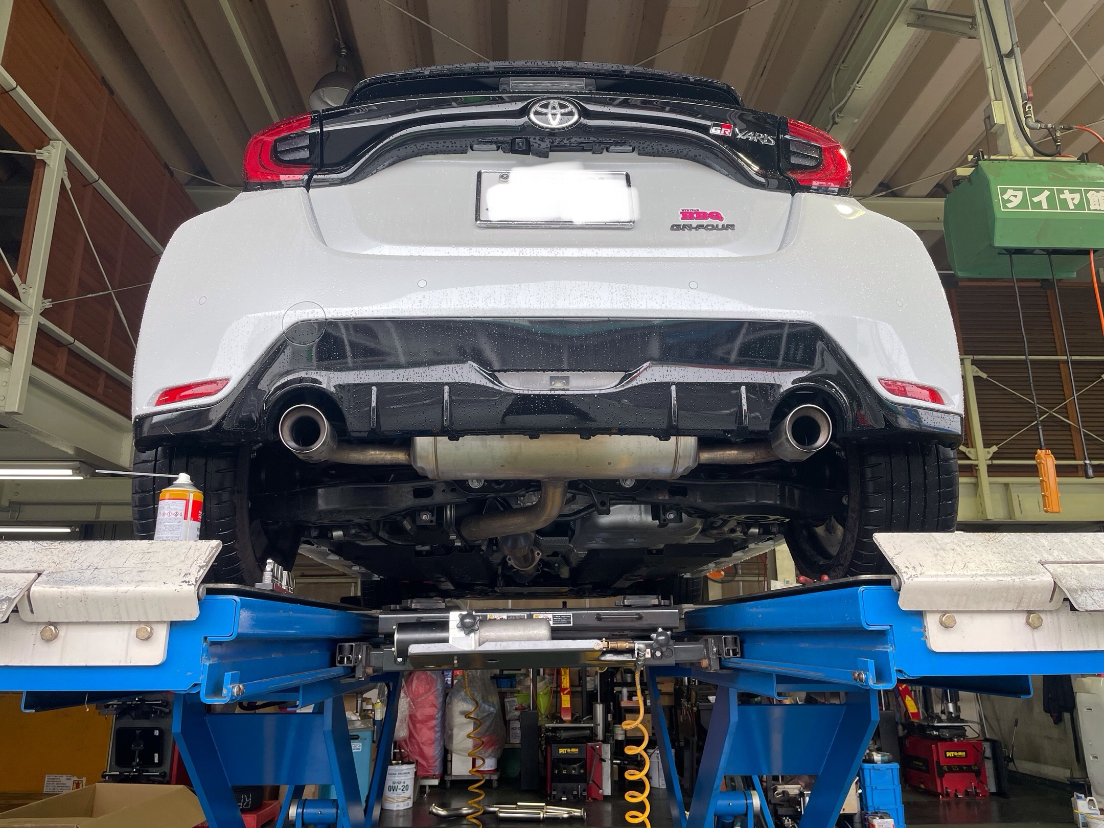 GRヤリスへHKSスーパーターボマフラー装着です♫ ポスト 2024年4月3日 車検が通ってパワーが出てうるさく無いマフラー下さいとの事で!HKS 上はノーマルマフラー、下がHKS、 綺麗で軽くなって、良い事づくめですね〜お買い上げありがとうございました♪ 担当:目黒