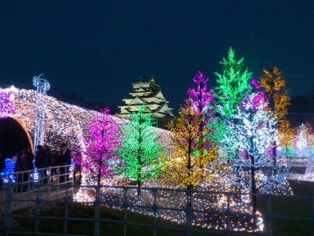 先週の休みに大阪城のイルミネーションを見に行きました(v´v`)
