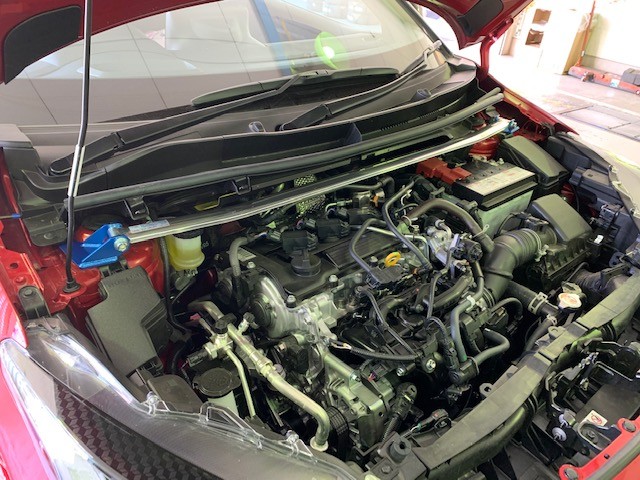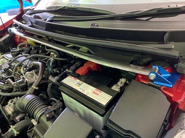先日、マフラー交換をご紹介させていただきましたD様のGRヤリスRSにストラットバー(タワーバー)とホーンを取り付けさせていただきました(^^)/