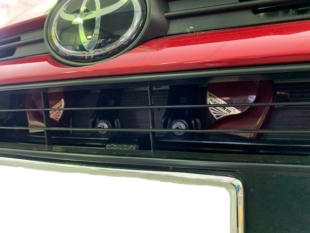 GRヤリスのホーン取り付けはバンパーの取り外しをしての作業になり、さらにアリーナⅢは配線の引き回しをしないといけなく、今回はホーン本体の設置場所や加工に時間がかかり約3時間ほどかかりましたが、出来栄えにD様もすごく喜んでいただき本当によかったです(*´ω`)