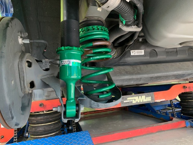 とりあえず車高がどうしても気になると言う事でご相談があり、お話をお聞きしているとダウンサスか安い車高調をお考えでしたが、「ローダウンした時の乗り心地が気になる」とご心配されていたので当店大人気のテインさんをおすすめさせていただきました(^-^)