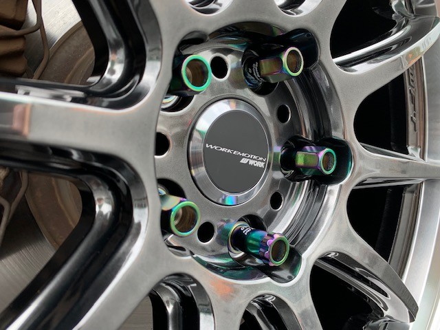 ナットにもこだわり、チタン色のレーシングナットがホイールの色とデザインにマッチしていてすごく良い感じです(*^^)v