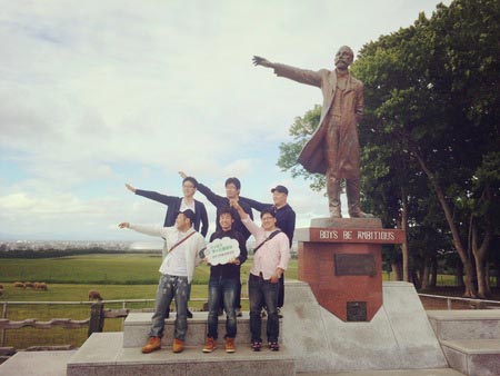 その後大倉山公園ではスキージャンプ台から札幌市内を一望し、羊が丘展望台では六人で記念写真・・・美しい☆