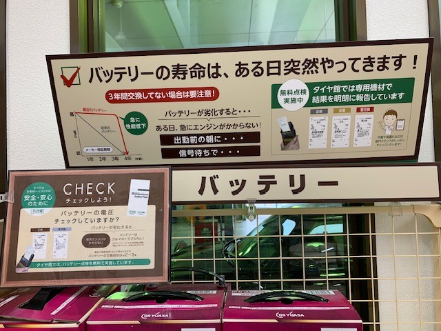 当店では無料バッテリー点検を実施中ですのでご心配な方はお気軽にご来店下さいね(^_-)-☆