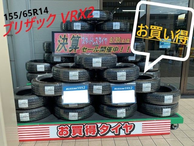 特に!! 軽自動車でよく使用されているタイヤサイズ「155/65R14」では【ブリザック VRX2】がお買い得になっており、今ならいっぱい在庫あります!!(^O^)/