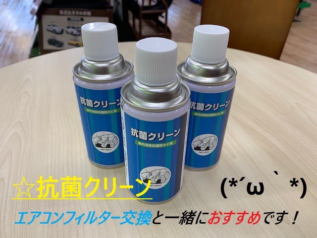 抗菌クリーンは、車内やエアコンからのニオイが気になる方のほかにも、おタバコを吸われる方、お子様やペットも同乗される方にもおすすめです!!(*^^)v