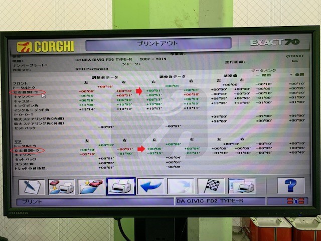 シビック タイプR(FD2)は前後トー角の調整になります(^^)/