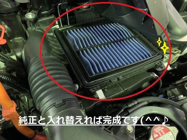 純正エアフィルターと交換するだけなので、車種によりますが作業時間は約15分です(^^♪