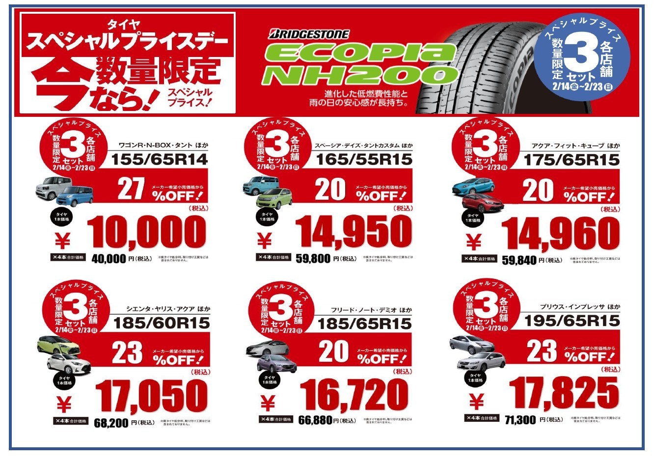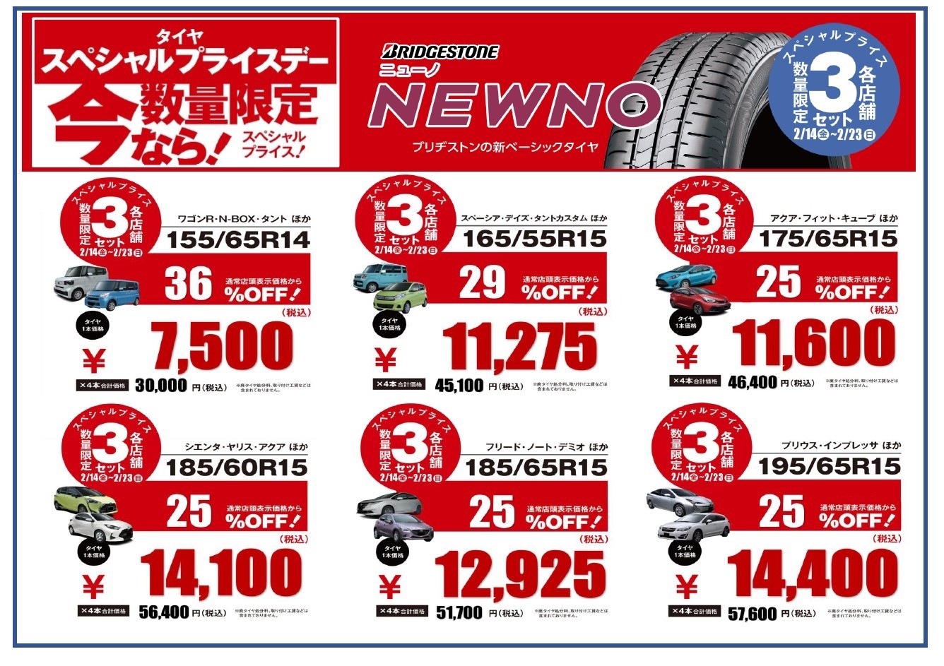 ★数量期間限定スペシャルプライス‼【開催中!】 ポスト 2025年2月15日 ⭐数量期間限定スペシャルプライスセール実施中です(*´▽`*) 2月14日~2月23日まで! サイズ限定&数量限定ですが、とってもお買い得なスペシャルプライスになっております❕ ぜひ、この機会をお見逃しなくヾ(@⌒ー⌒@)ノ お電話でも取り置き・ご予約OKです❕ 数量期間限定ですので、お早めにお願いします(^^)/ タイヤ館 奈良南 住所:639-1104奈良県大和郡山市井戸野360-1 電話番号: 0743-54-7711 担当:久保
