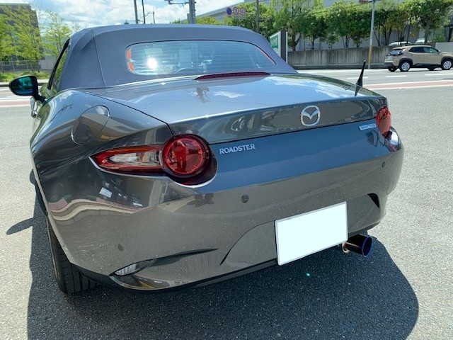 NDロードスターの社外マフラーは2本出しが多い気がしますが、1本出しには1本出しにしか出せない迫力があるので、あえての1本出しもアリです!(^^)!